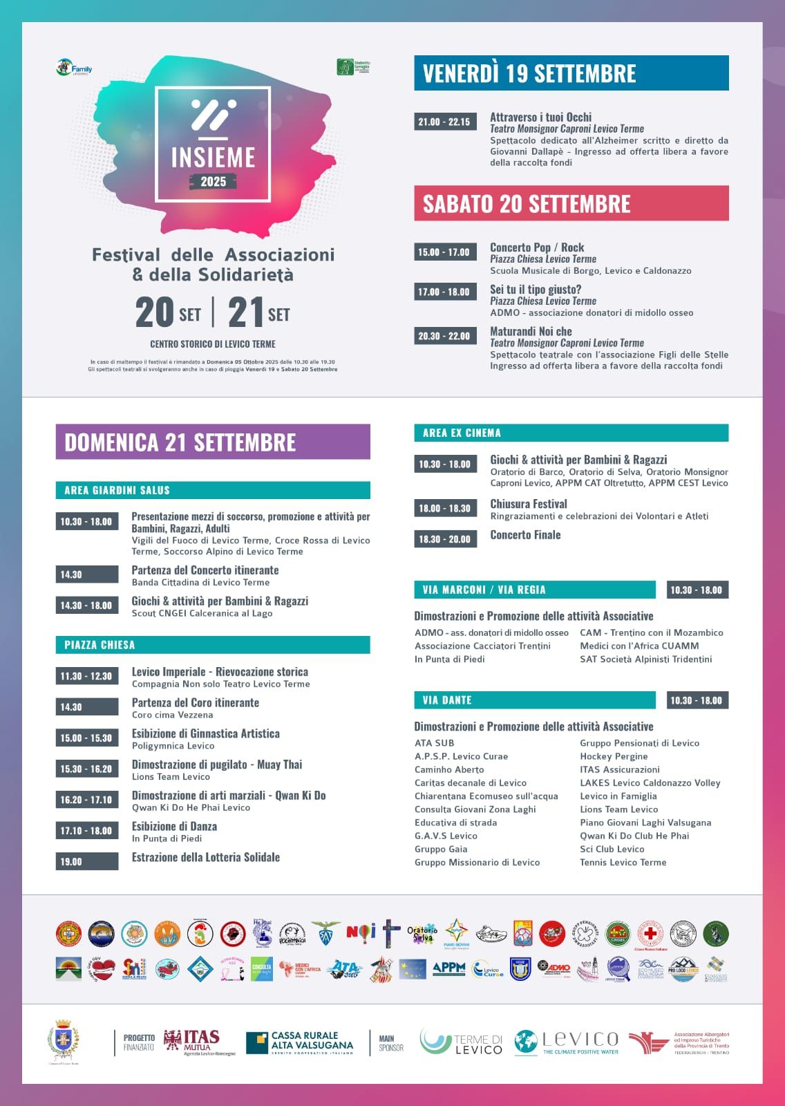 Sabato 20 e domenica 21 settembre 2025 | ADMO Trentino parteciperà al Festival delle Associazioni e della Solidarietà di Levico Terme con…