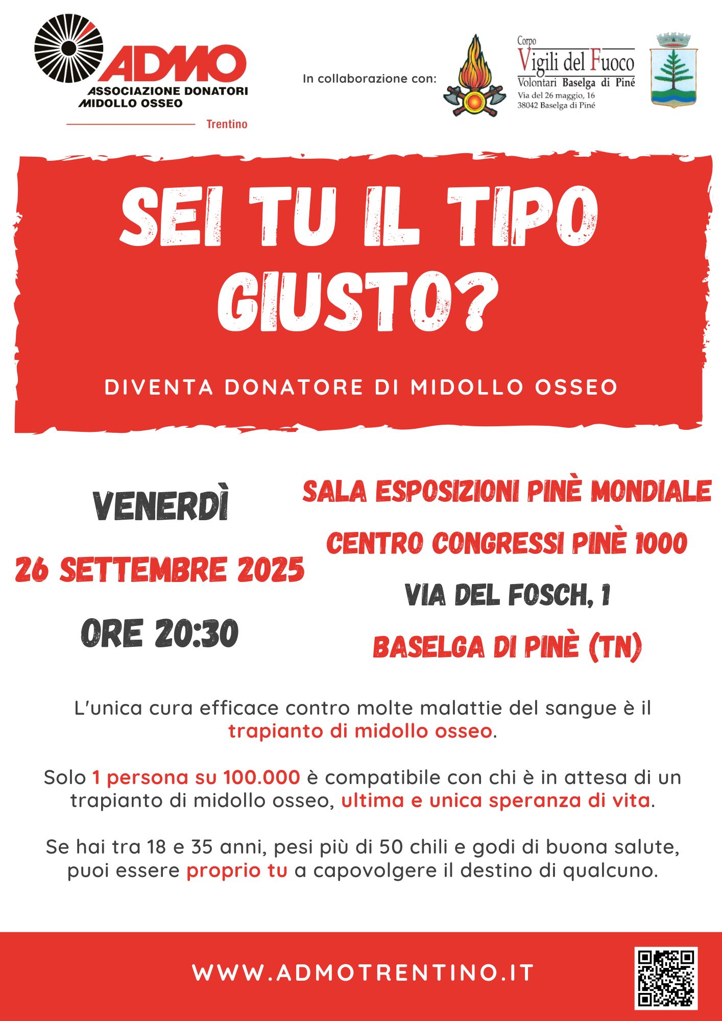 Venerdì 26 settembre 2025 | ADMO Trentino, in collaborazione con il Corpo dei Vigili del Fuoco Volontari di Baselga di Pinè, organizza…